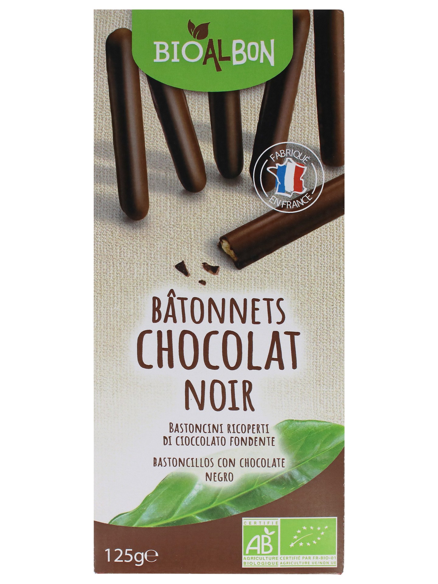 Direttamente dalla Francia, l’azienda Bio al Bon ci propone un prodotto da forno goloso, dei bastoncini ricoperti di cioccolato fondente (48%) per una merenda o uno snack pieno di dolci sapori e sensazioni. Da agricoltura biologica.