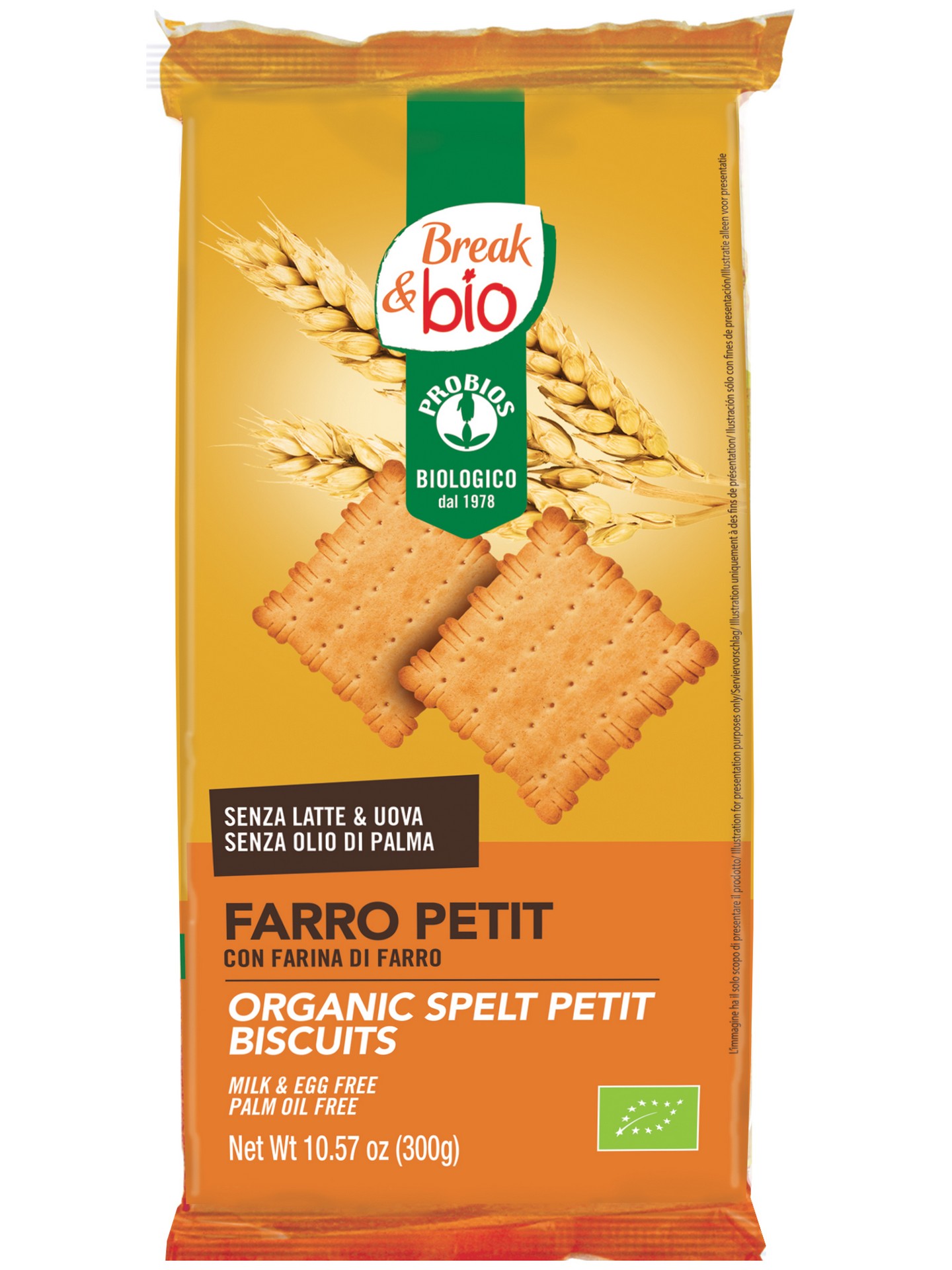Biscottini a base di farina di farro e riso, dolcemente arricchiti con succo di mela e pera, ottimi da inzuppare. Dolcificati con sciroppo di cereali, senza latte e uova.