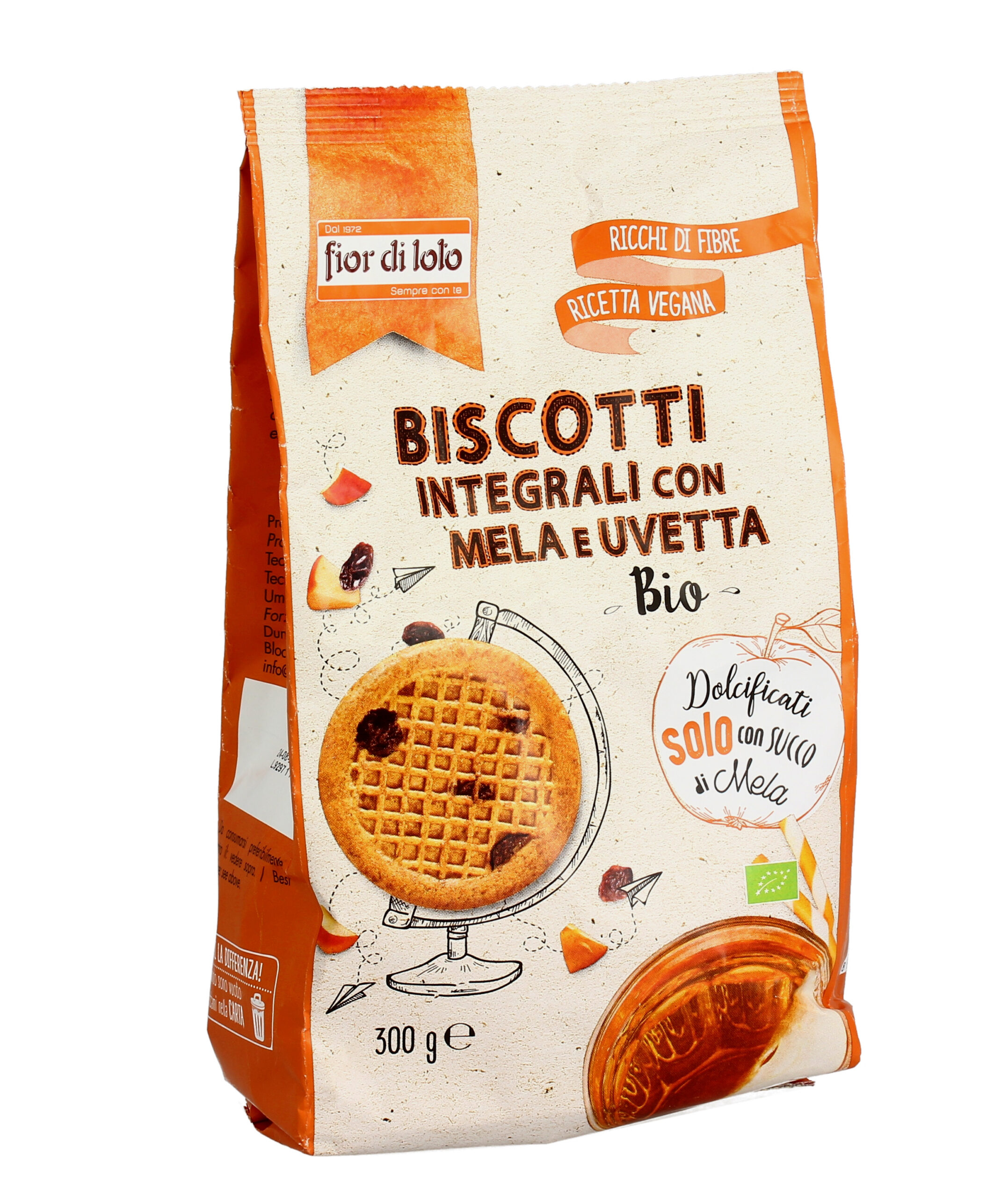 BISCOTTI INTEGRALI CON MELA E UVETTA 300G