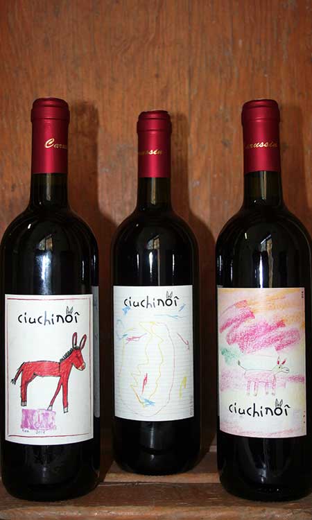 Le etichette sono state disegnate da bambini che visitano l’azienda e partecipano alle iniziative della Fattoria didattica.