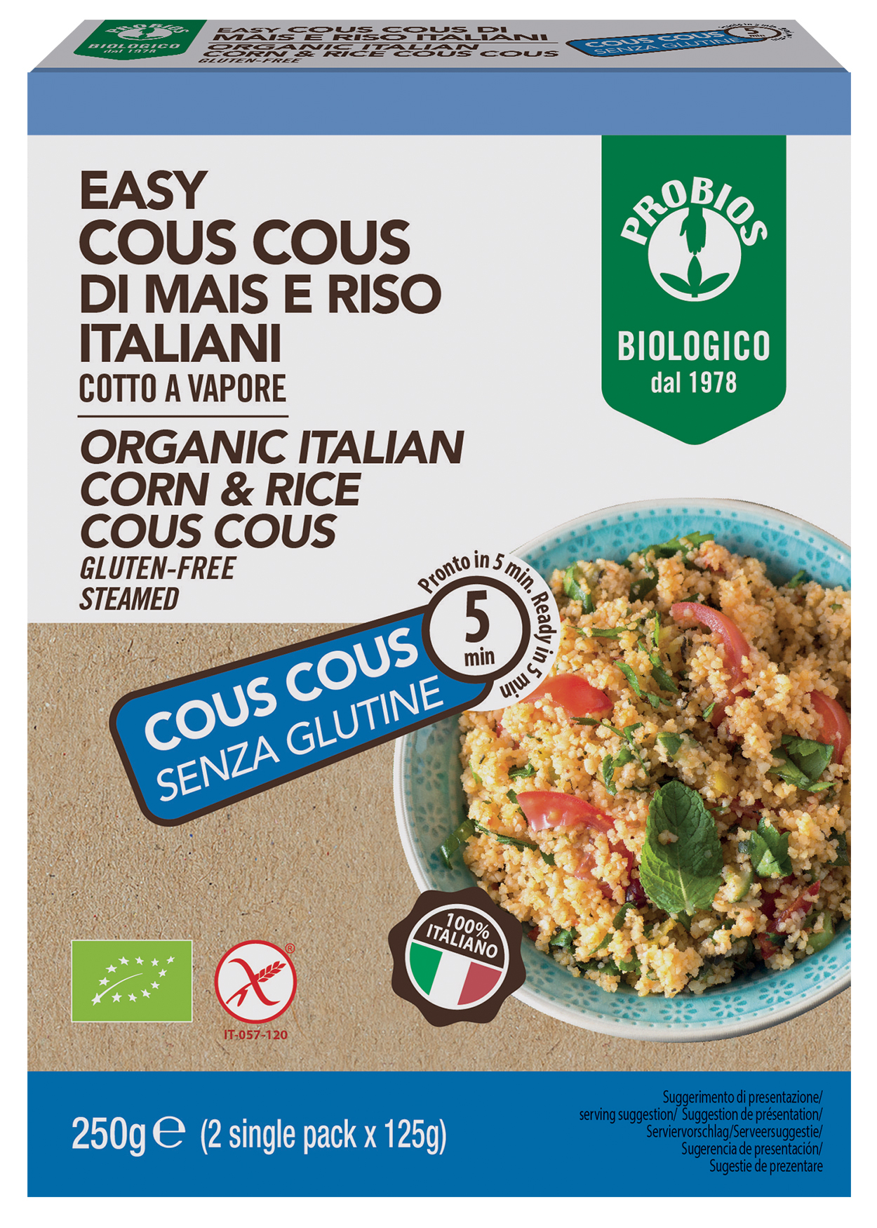 Un piatto facilissimo da preparare, bastano infatti 5 minuti per gustare questo cous cous prodotto con mais e riso italiani. Garantito senza glutine.
