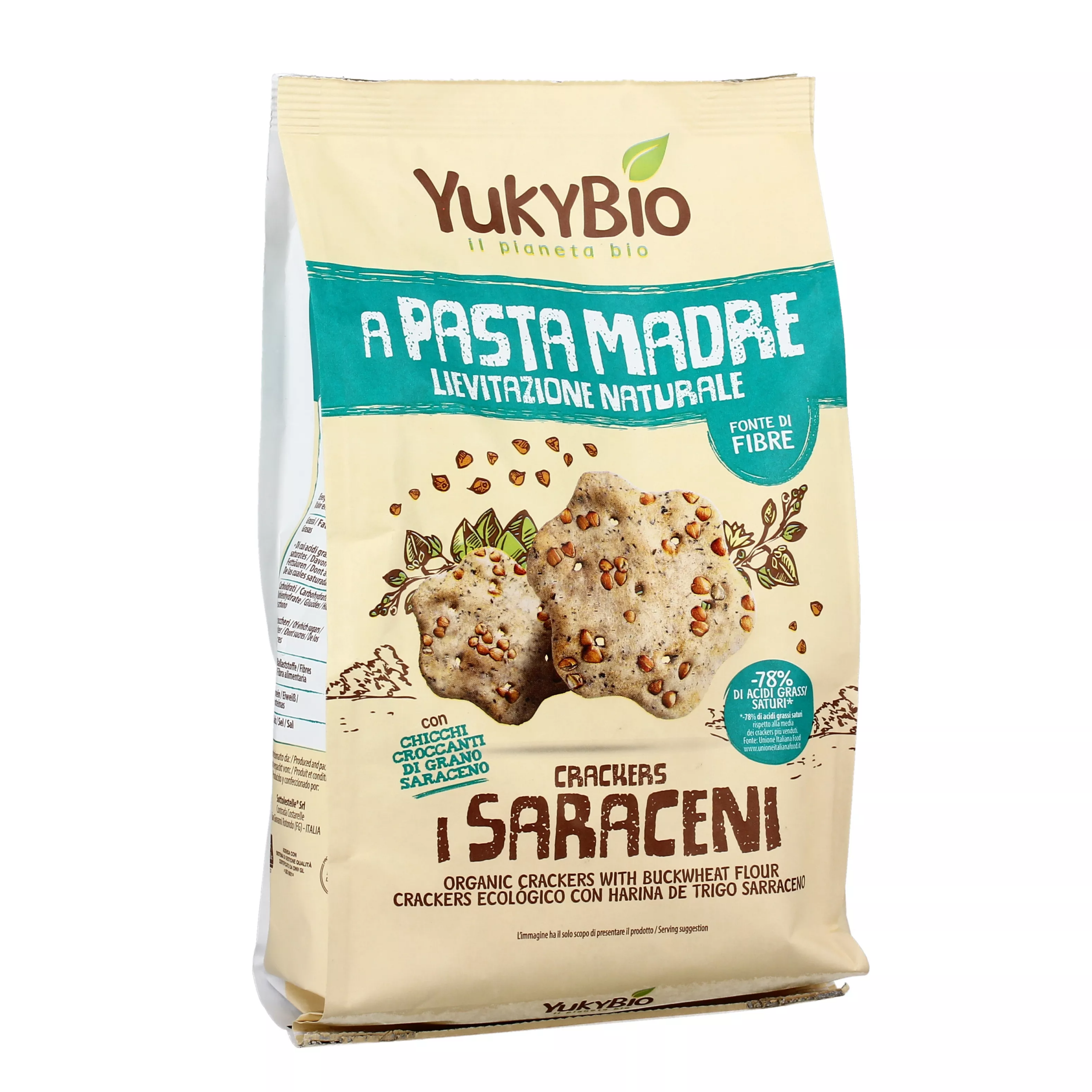 I Crackers Saraceni di Yukibio sono dei croccanti e gustosi crackers biologici a base di farina e chicchi di grano saraceno.