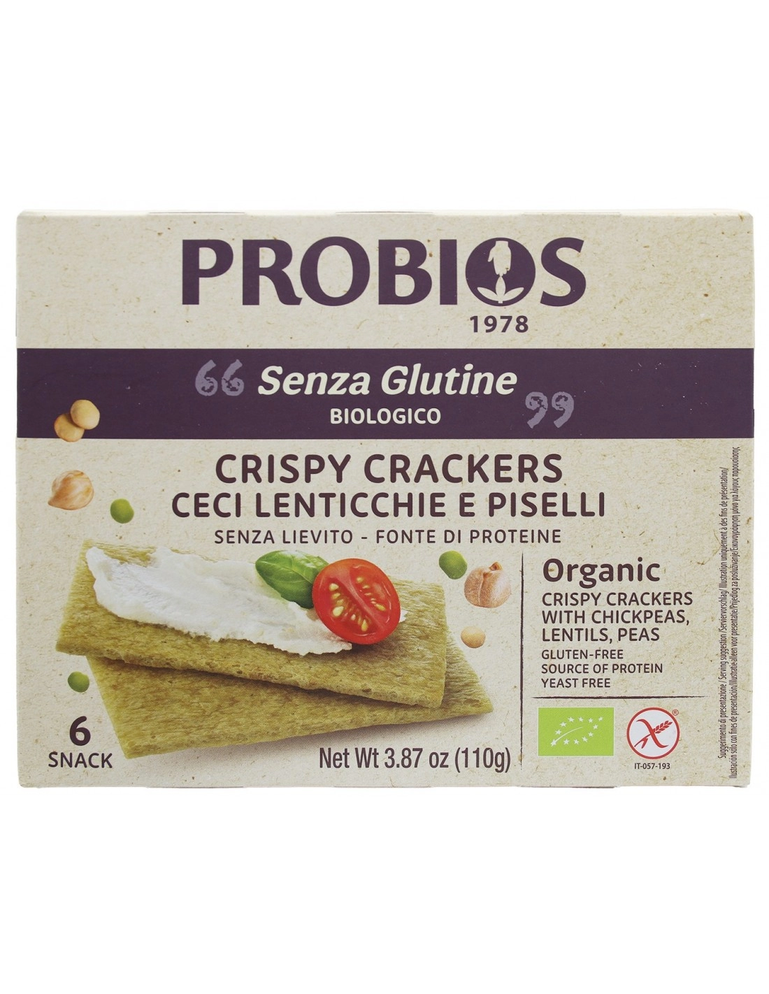 *** SPESA DI VALORE *** CRISPY CRACKERS CON CECI, LENTICCHIE E PISELLI SENZA GLUTINE 110G