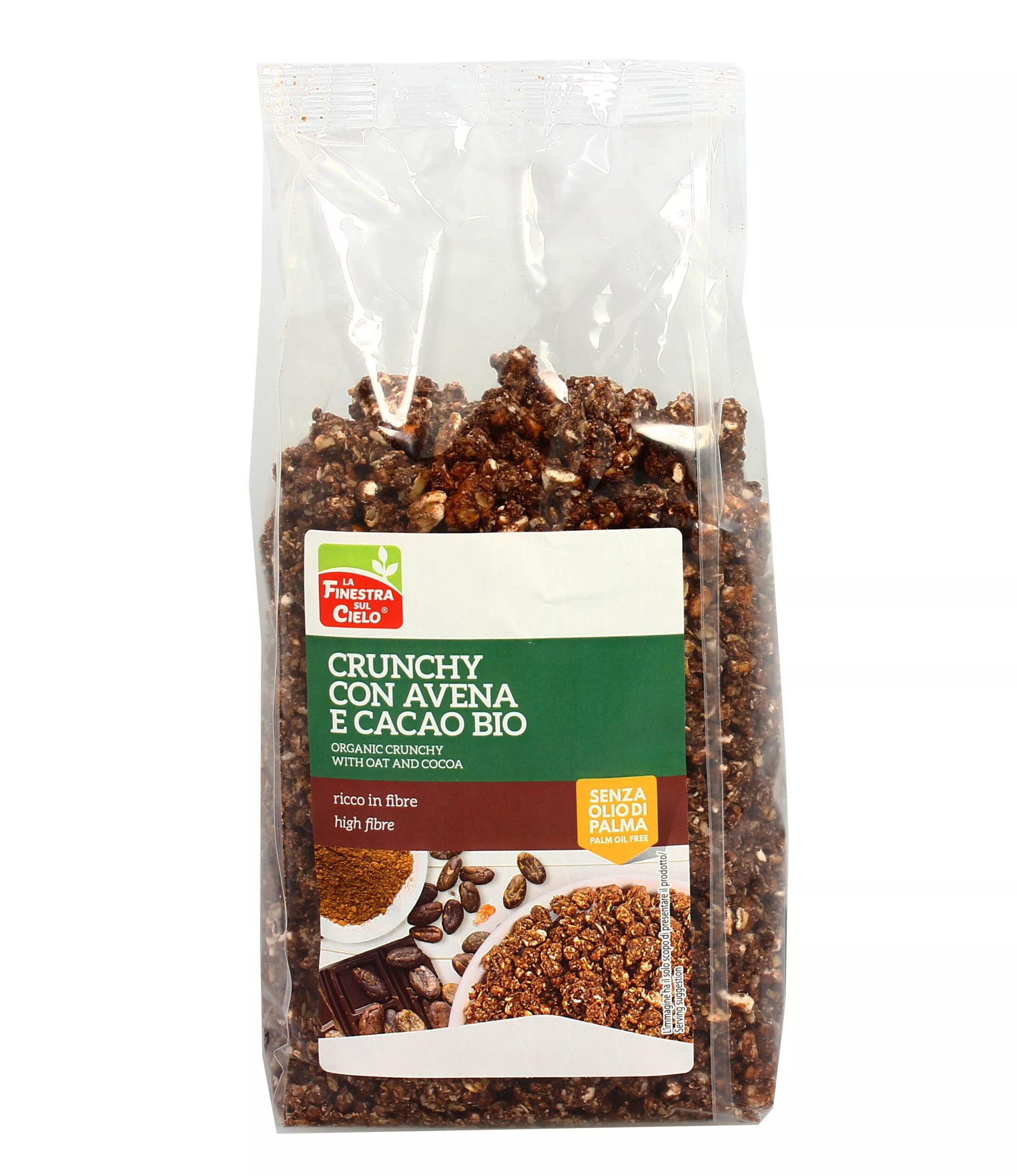 I Crunchy de La Finestra sul Cielo sono muesli croccanti ideali per una prima colazione sana ed energetica da immergere nel latte, nelle bevande vegetali o nello yogurt, a base di ingredienti biologici certificati, senza olio di palma e con un alto contenuto di fibre.