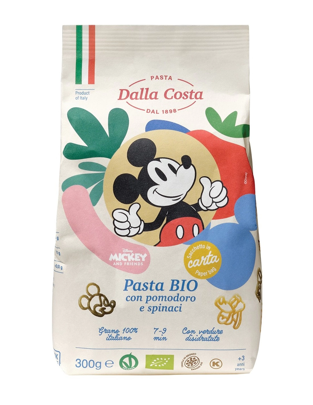 Arricchita con verdure disidratate biologiche (pomodoro e spinaci) che le conferiscono una divertente tricolorazione, la Pasta Disney© Mickey Mouse è prodotta con semola di grano duro biologico italiano, essiccata a basse temperature e trafilata al bronzo.