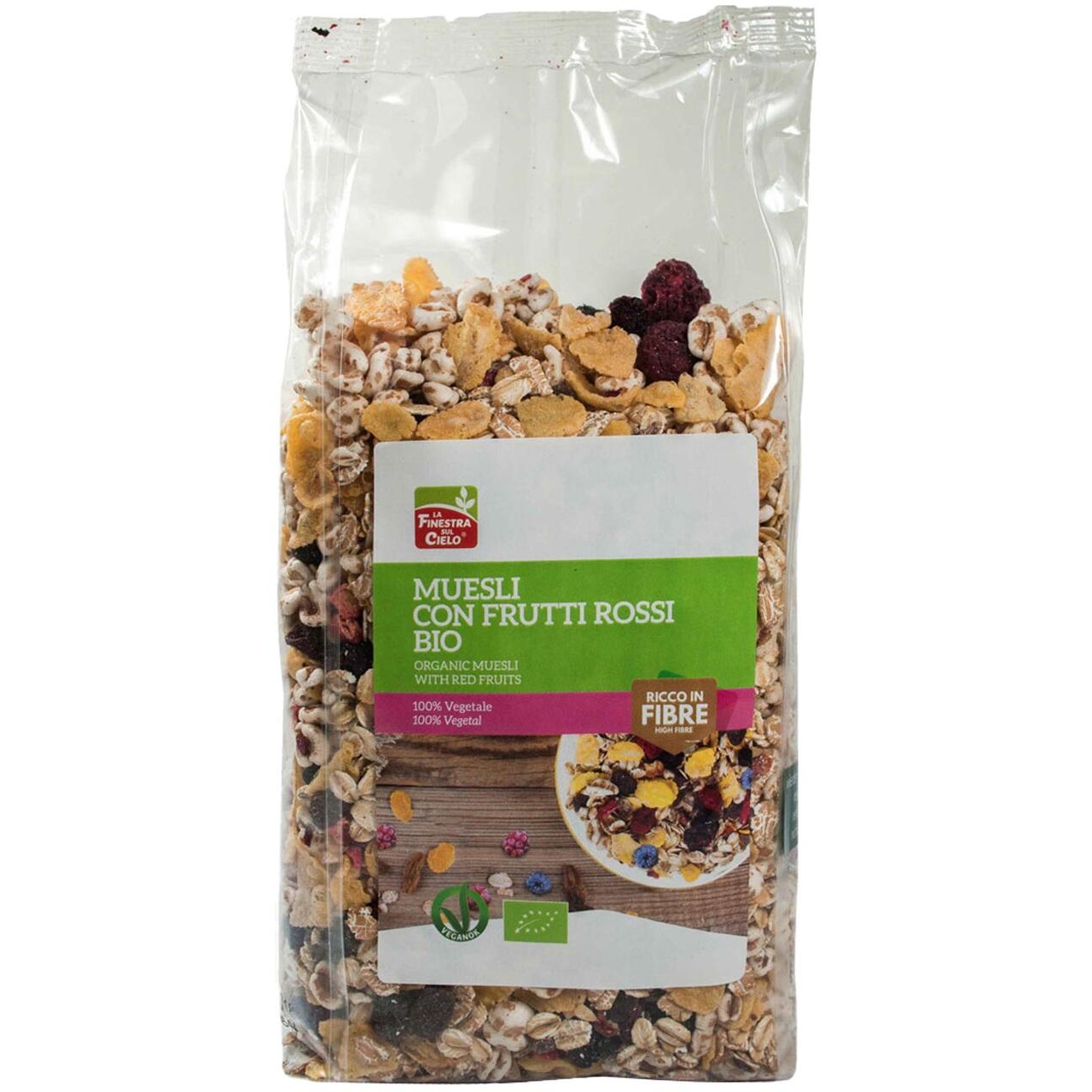 Il Muesli con Frutti Rossi Bio de La Finestra sul Cielo è un gustoso mix di bontà e natura; con cereali e frutta disidratata da agricoltura biologica. Croccante e perfetto per la colazione, questo muesli bio è un vero e proprio connubio di fibre, vitamine e sali minerali, ma senza rinunciare alla bontà.