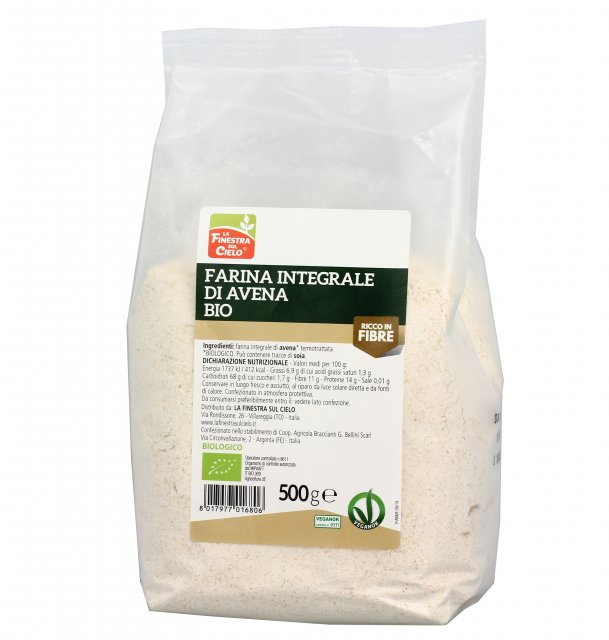 La Farina Integrale di Avena de La Finestra sul Cielo è perfetta per la preparazione di prodotti da forno e ricette tradizionali.