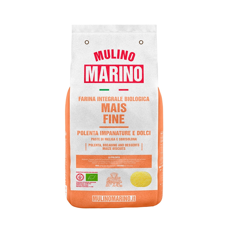 Questa farina è adatta alla preparazione di polenta, dolci di mais, biscotti di meliga, sbrisolona, impanature e fritti. Cottura 90 minuti.