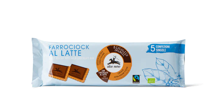 I biscotti di farro biologici ricoperti con una tavoletta di cioccolato al latte Alce Nero sono prodotti con farro italiano e olio extra vergine di oliva biologico. Il cacao utilizzato è ottenuto da fave di cacao provenienti da coltivazioni biologiche in cui si promuovono principi di qualità, salubrità e sostenibilità.