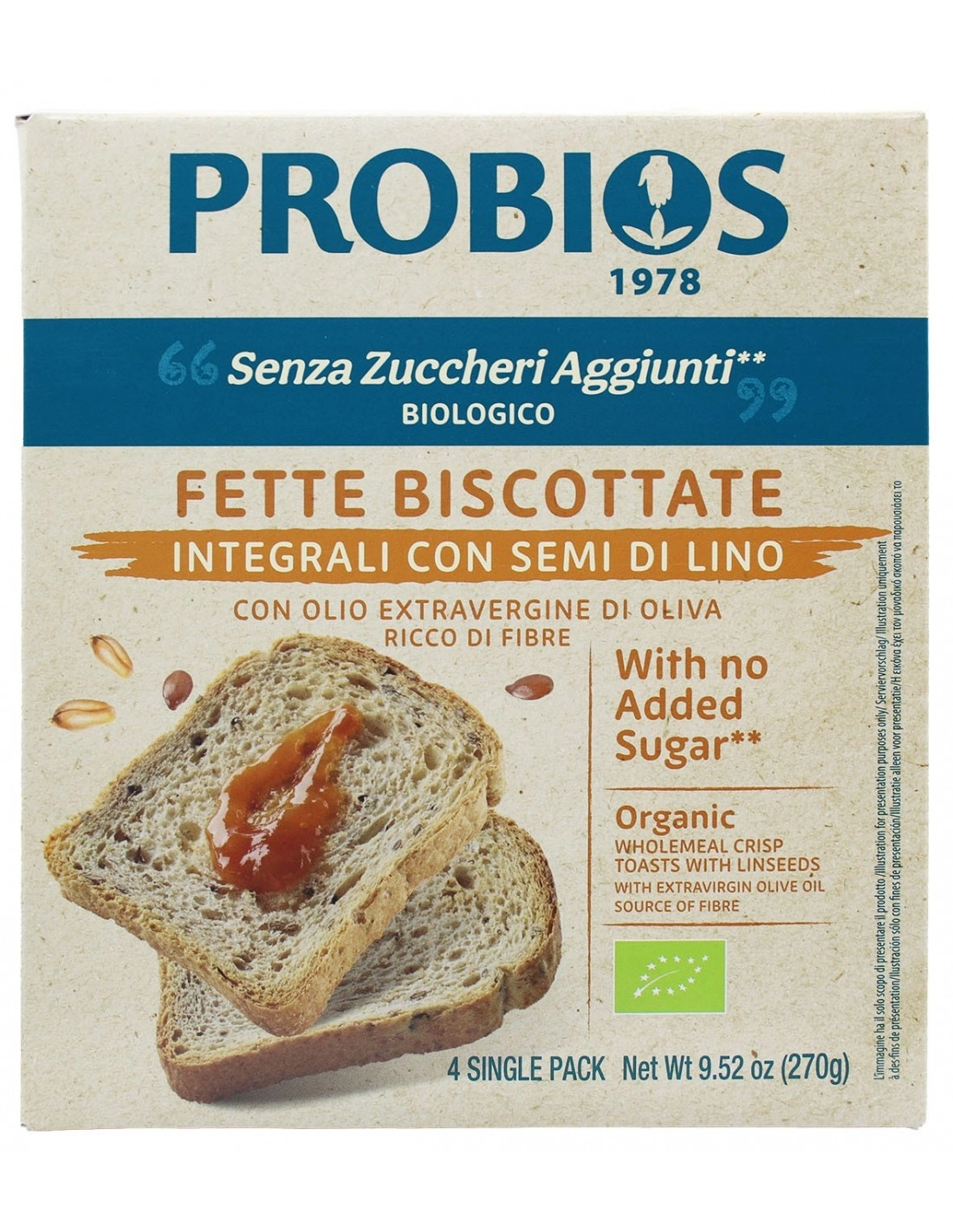 FETTE BISCOTTATE CON FARINA INTEGRALE E SEMI DI LINO 270G