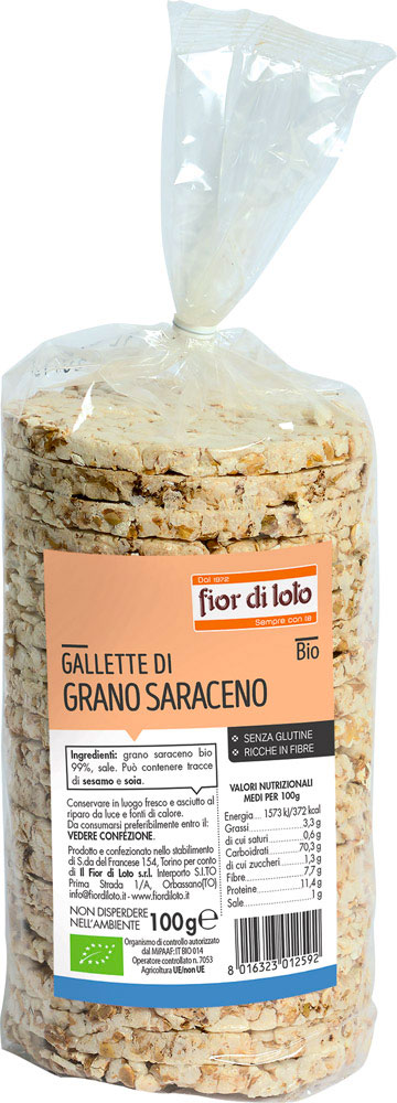 Le Gallette di Grano Saraceno di Fior di Loto sono un prodotto alimentare 100% naturale: con solo grano saraceno biologico.