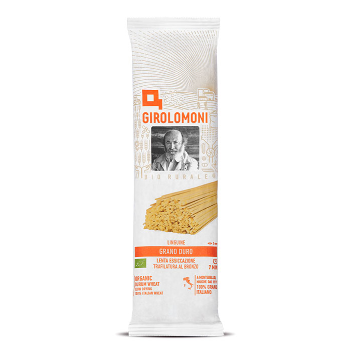 La rugosità delle Linguine di Girolomoni aiuta la pasta a trattenere i condimenti che quindi la insaporiscono meglio.