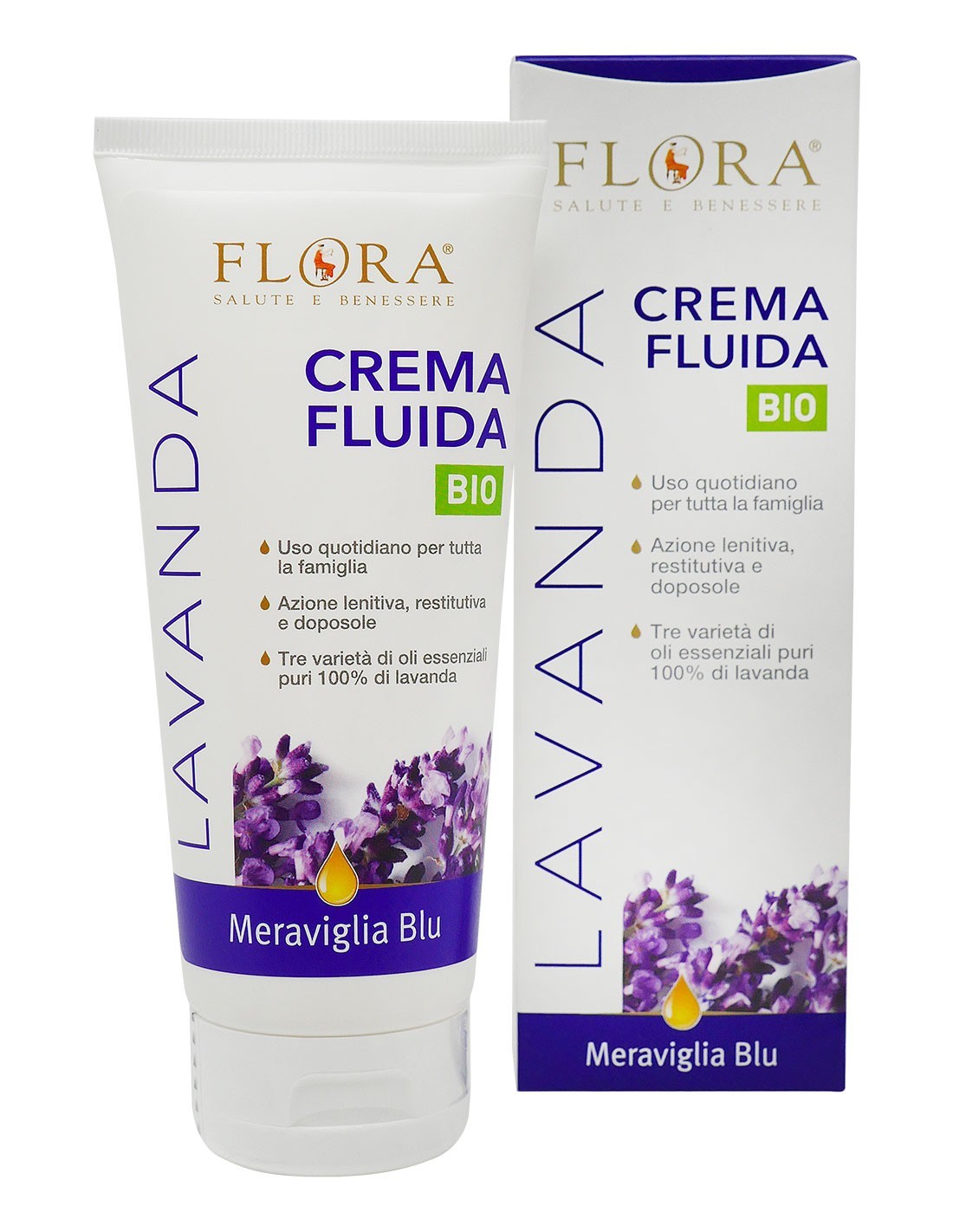 Questa Crema Corpo Fluida Blu Lavanda è una delicata emulsione lenitiva, restitutiva e doposole, ideale da utilizzare dopo il bagno e la doccia. Dal profumo intenso, armonizzante e floreale grazie alle note dei fiori di lavanda. Gli oli essenziali 100% puri, naturali e totali di lavanda, uniti agli steroli della Brassica campestris, placano e purificano la pelle stressata e disidratata. Inoltre rendono il prodotto particolarmente attivo per rinfrescare e calmare ogni tipo di pelle, in particolare quella irritata e arrossata dai raggi solari. La glicerina, presente in elevata quantità, svolge un’ottima azione idratante, lubrificante e rigenerante nei confronti dell’epidermide. La funzionalità aromaterapica della lavanda ha un effetto rilassante e calmante.