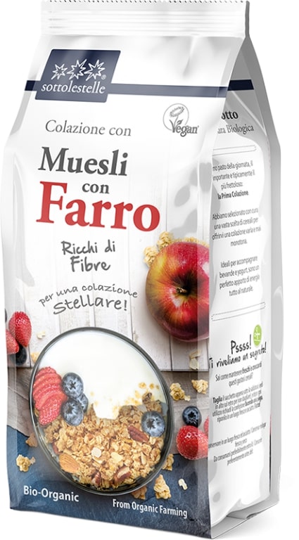Il Muesli con Farro è realizzato con fiocchi di farro reso gustoso da un delizioso mix di semi. Un inizio perfetto per la giornata che provvede all’apporto di energia tutta al naturale. Accompagnato da bevande o yogurt vegetali, fornisce infatti preziose sostanze nutritive. Senza zuccheri aggiunti, naturalmente gustoso.