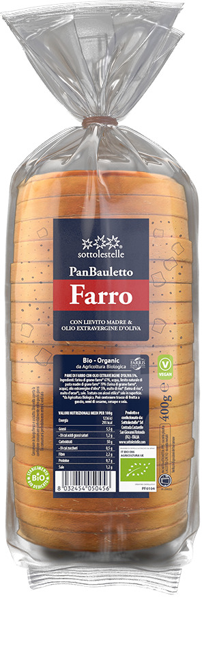 Frutto della paziente e straordinaria lievitazione naturale mediante l’impiego del lievito madre Sottolestelle. Digeribile e soffice, con un intenso bouquet di aromi, il pane bauletto di farro è ideale come base per spalmare creme, composte e salse preferite o per per preparare bruschette, tartine e toast.