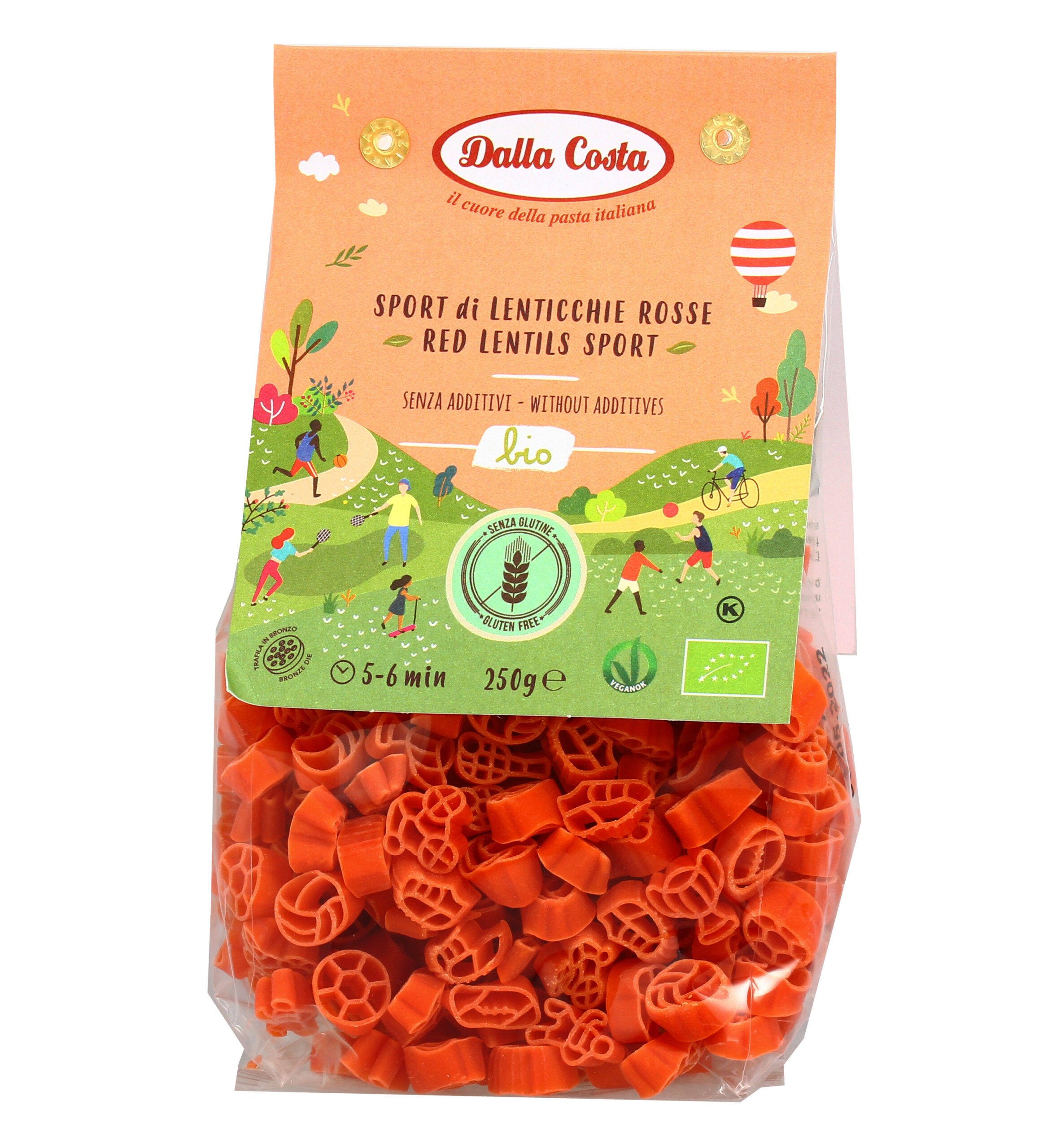 La Pastina di Lenticchie Rosse ”Sport” Dalla Costa è una specialità alimentare per bambini 100% senza glutine.