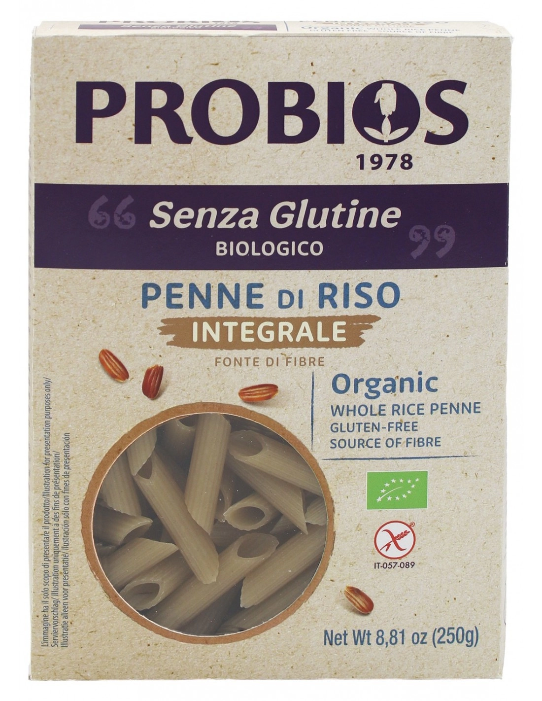 Dai chicchi del miglior riso biologico nasce la pasta 100% di riso integrale Probios. Ottima tenuta in cottura, soddisfa non solo il palato di chi ha particolari esigenze alimentari ma anche di tutto il resto della famiglia. Il simbolo della spiga barrata indica che il prodotto è completamente privo di glutine poiché è concesso dall’Associazione Italiana Celiachia in base a un rigido disciplinare.