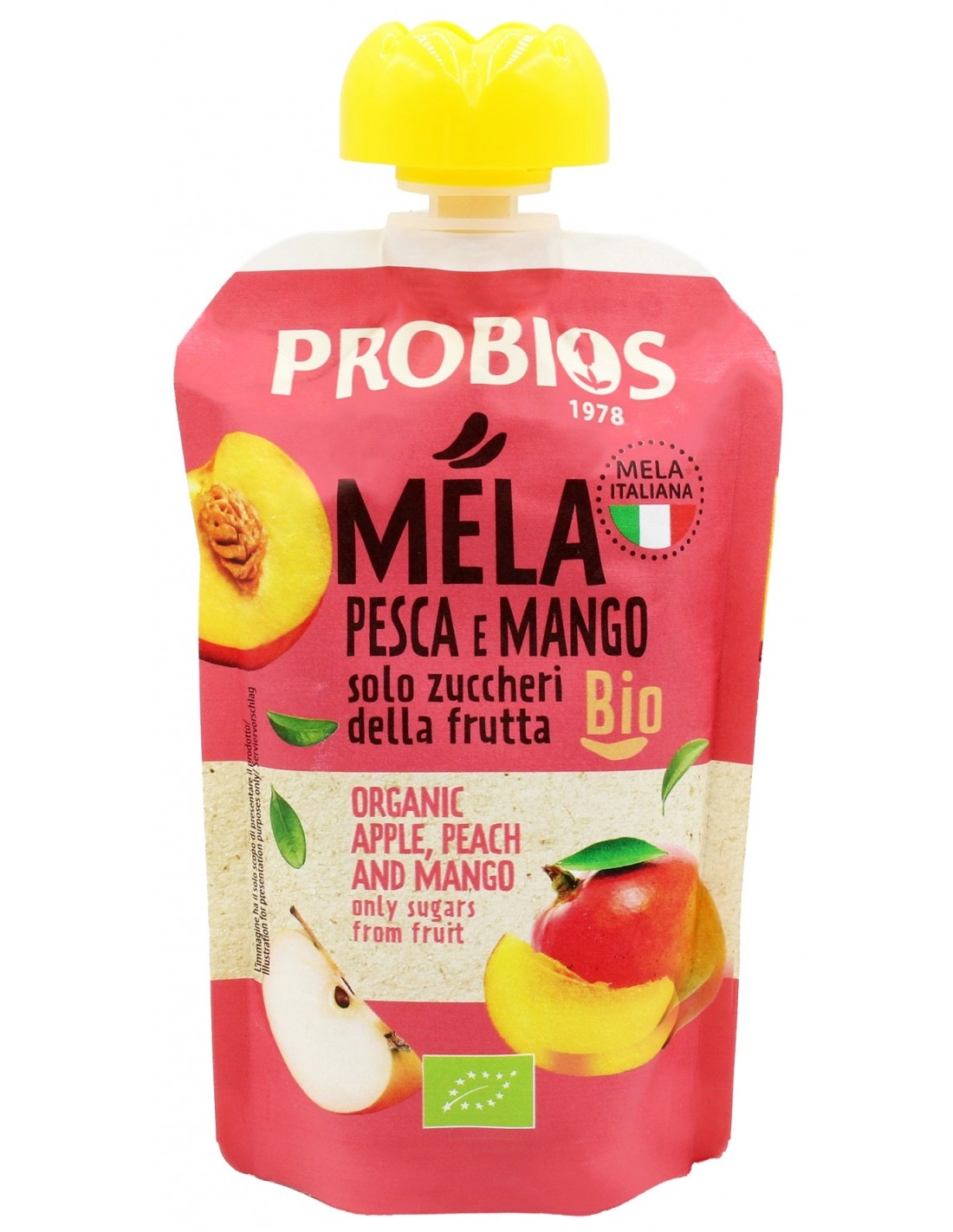 *mela 80%, *pesca 10%, *mango 10%. *biologico.
