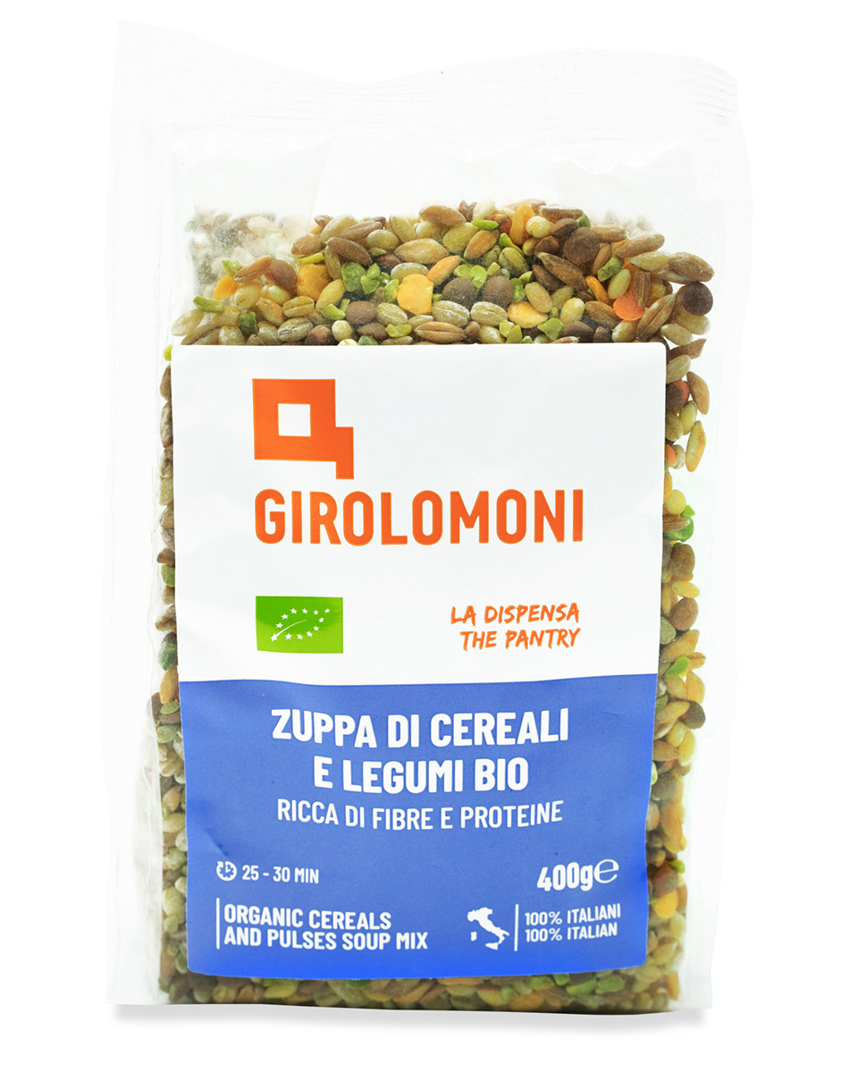 Semplice, sana e gustosa, la Zuppa Cereali e Legumi Girolomoni è preparata con ingredienti da agricoltura biologica 100% italiana ed è ricca di fibre e proteine.