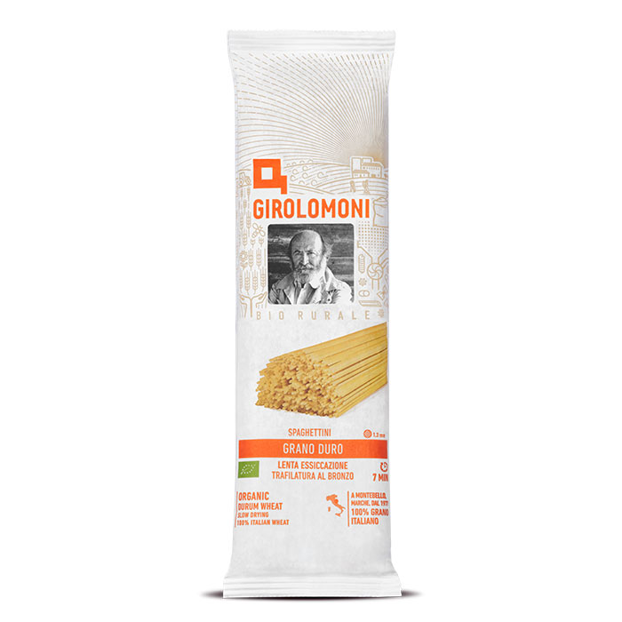 Gli Spaghettini di Semola di Grano Duro Bio di Girolomoni sono ottenuti esclusivamente con grani duri coltivati in Italia, con metodo rigorosamente biologico.