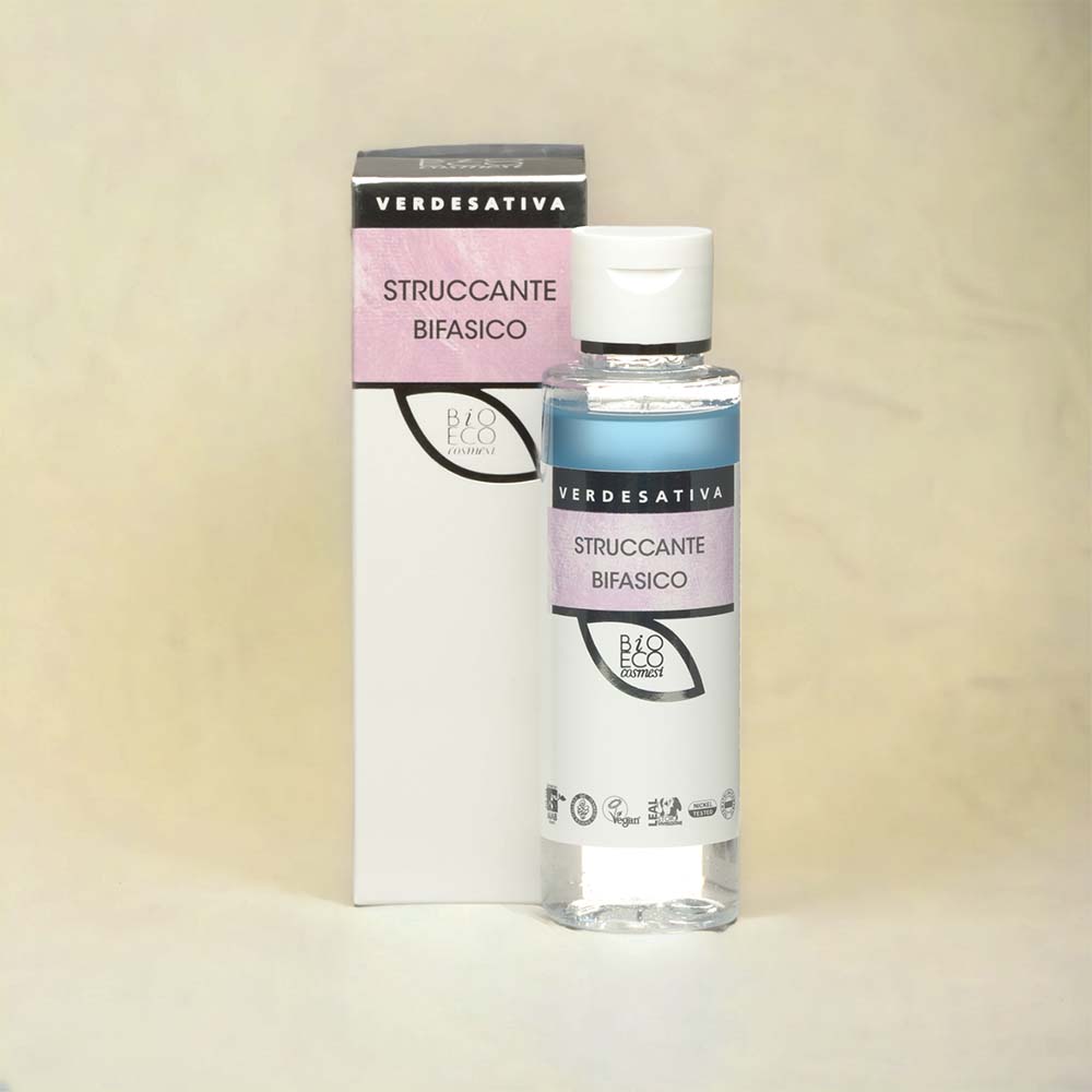 Lo struccante Bifasico Verdesativa rimuove efficacemente make-up, anche waterproof, ed impurità dalla pelle con un solo gesto, lasciandola morbida e pulita.