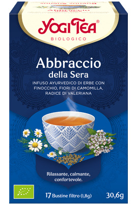 Un buon giorno inizia già dalla sera prima. Per fare in modo che sia così, trascorriamola in completo equilibrio mentale e con una profumata tazza di YOGI TEA® Abbraccio della Sera. Gli ingredienti calmanti come la lavanda e la radice di valeriana ci stringono in un caldo abbraccio, mentre le erbe aromatiche come la menta e la salvia ci rigenerano.