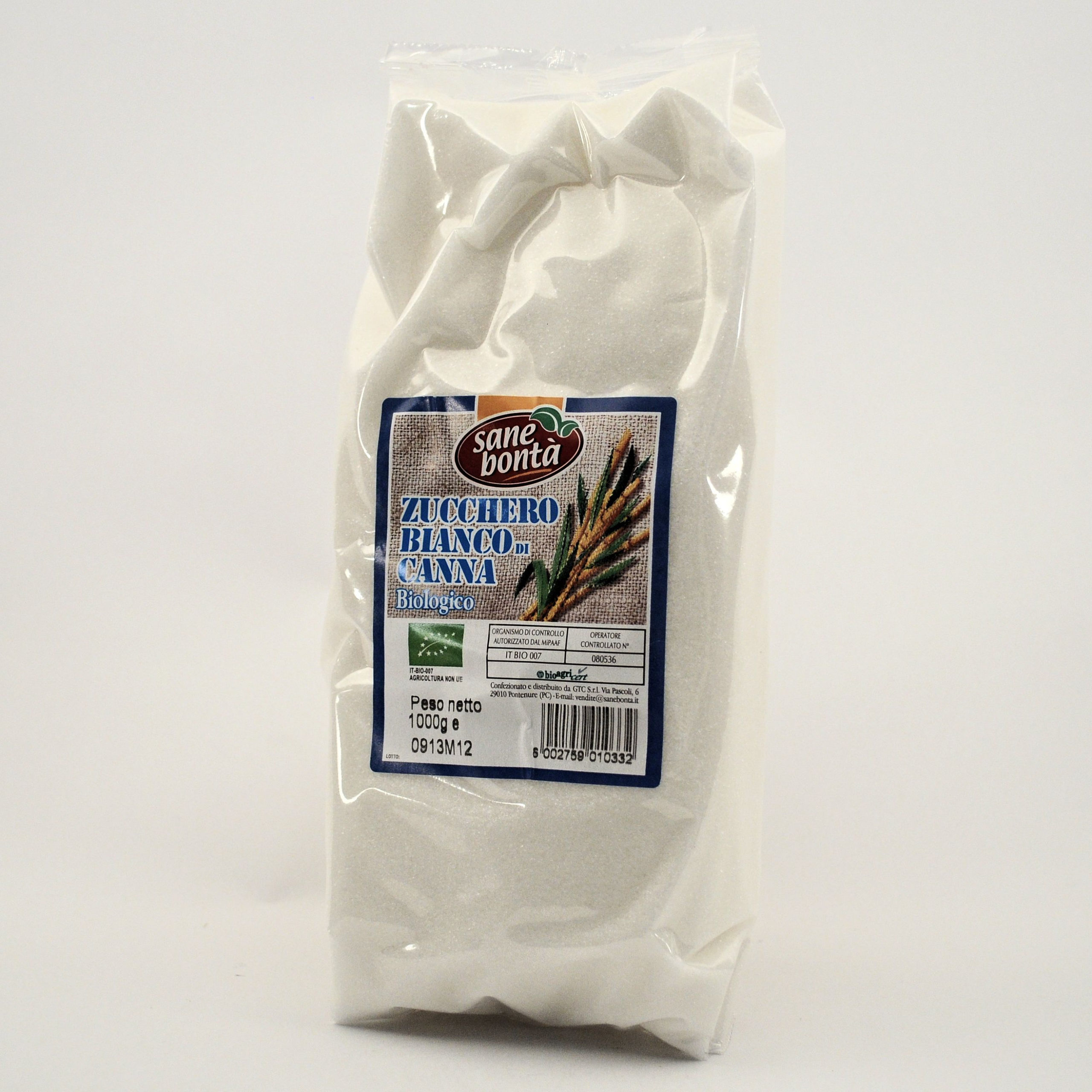 zucchero bianco di canna sbiancato a vapore*. *biologico.