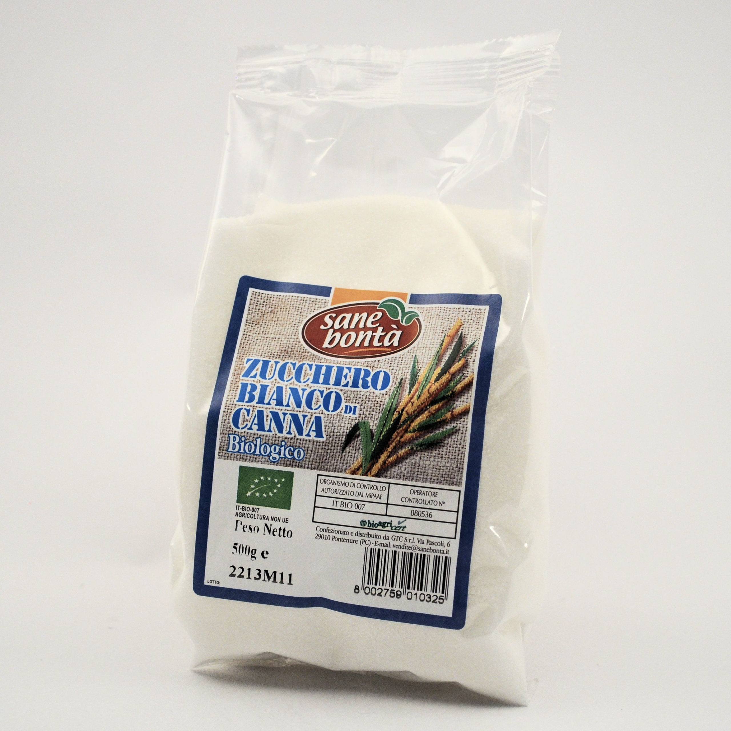 zucchero bianco di canna sbiancato a vapore*. *biologico.